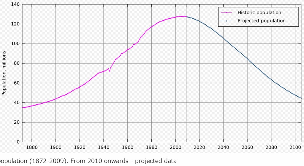 日本では総人口は2006年の1.28億人をピークに下がりだし、2019年10月時点では1.26億人となっています。今後下降率はどんどん大きくなる予定で、2060年には88百万人(総務省とうけいきょく推計)に減少すると推測されています。