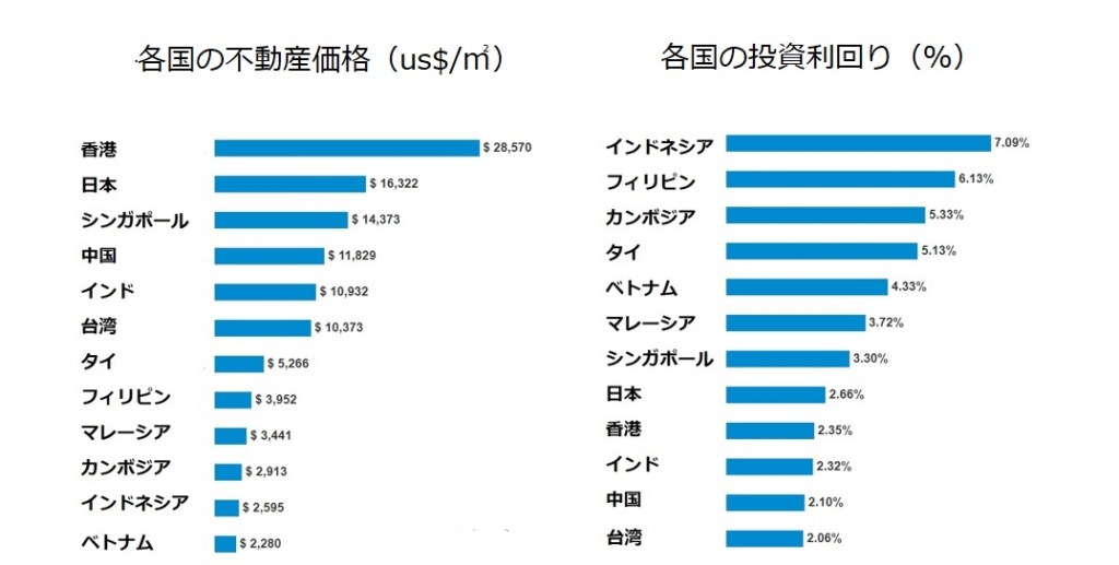 ただシンガポールは世界的に見ても不動産価格はかなり高いです。上記データは金額から見て各国の都市の一等地近辺のコンド等の価格と推定します。上記の比較では香港が㎡辺り$28,570 (107円換算で305万円)、日本に続いてシンガポールが$14,373(同154万円)となっています。価格で見るとタイは3分の1、ベトナムはシンガポールの6分の1という安さです。また利回りで言いますと、シンガポールは3.3%とかなり低いです。例えばインドネシア等は利回りが7%を超えていますが、多くのインドネシアの富裕層はシンガポールの住宅不動産に投資しています。何故でしょうか?